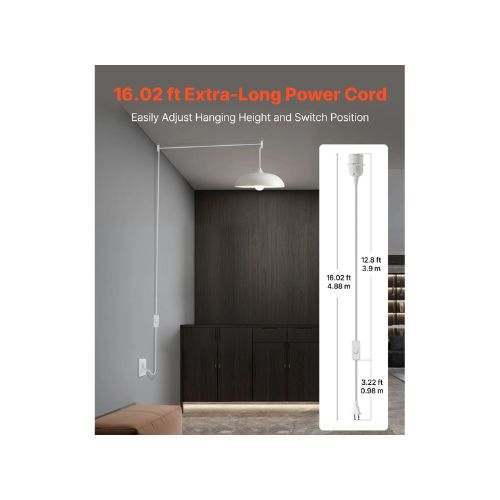 This hanging light cord features a 16.08 ft power cord for flexible placement and convenient installation. The adjustable hanging length allows you to customize the lamp height, while the inline switch enables easy on/off control.