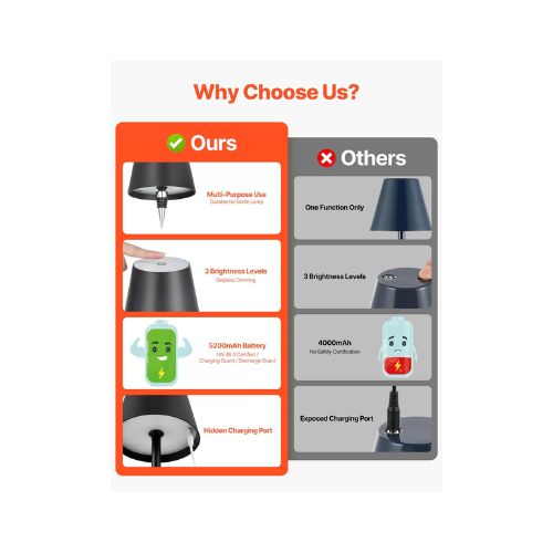 The detachable lamp head fits neatly into a bottle neck, instantly converting the unit into a creative bottle lamp. Ideal for everyday lighting or special events, it brings a romantic and distinctive atmosphere to any setting.