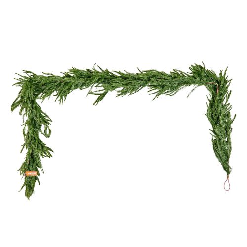 This 6-foot artificial Christmas garland features lifelike Norfolk pine with a full, fluffy, and dense appearance. True-to-life greenery adds natural texture and festive charm to your holiday décor.