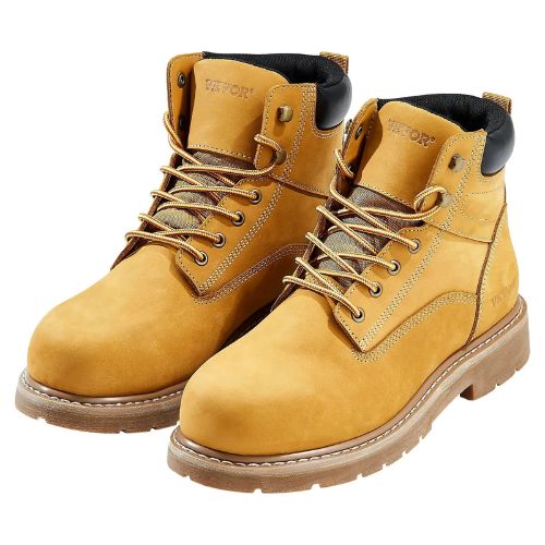 Steel Toe Work Boots for Men Size 9 Waterproof & Slip-Resistant (Brown Yellow)