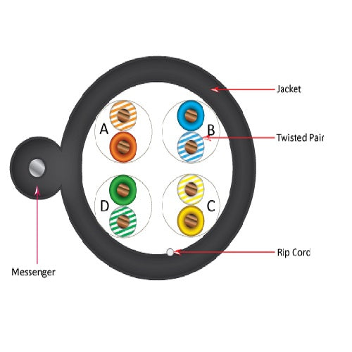 Category-5E, STP Outdoor-Rated Cable with Messenger UV-Rated Jacket, Solid-Bare Copper.