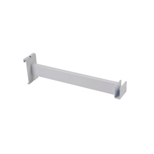 Econoco's economical Hangrails to add more merchandise and display options to your retail store. Display a row of garments on hangers or showcase one suit or a complete outfit. Econoco's Hangrail Bracket for Rectangular Tubing measures 12" long to the center of a U-cup. Made from durable 16-gauge steel, the handrail bracket resists bending and damage. The bracket is coated with a chip and scratch-resistant semi-gloss white finish and will accept½" x 1½" rectangular tubing.