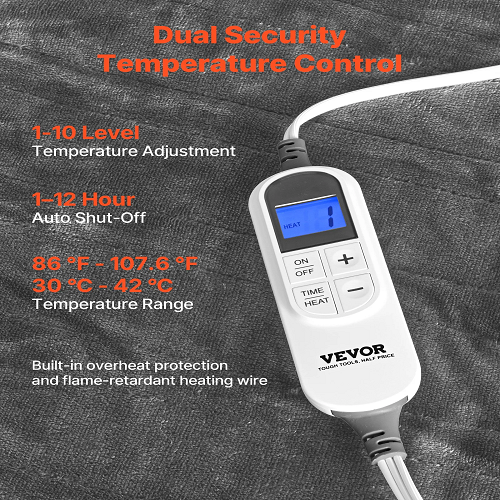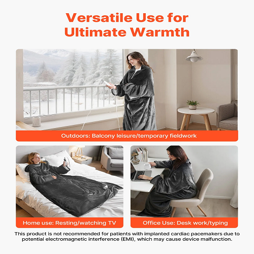 Con 10 niveles de calor ajustables (30 °C–42 °C) y un temporizador de apagado automático de 1 a 12 horas, esta bata térmica garantiza comodidad y tranquilidad personalizadas. La doble protección contra el sobrecalentamiento y los cables calefactores ignífugos garantizan un uso seguro y confiable, incluso en condiciones de frío.