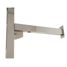 Rectangular tubing gives outrigger a much more upscale and stylized look. Outrigger creates impression of "department within a department". Use stubby brackets and add round or rectangular hangrail. All President Line hardware fits KF7.