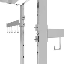 Equipped to handle high quantities of inventory, this handbag rack has eight (8) arms, each with five (5) hooks. These arms are 16" long, and independently adjust at each 3" increment from 48" to 72", allowing them to accommodate for various supplies. One arm on each rack has a 3⁄8" fitting for use with card frames. The whole rack is composed of rectangular tubing with inner adjustable uprights and arms measuring½"X1½".Includes four (4) twist-on arms with hooks to create two tiers and adjustable levelers.