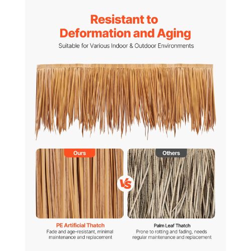 Made from high-quality PE material, this thatch is designed to withstand the elements—offering excellent resistance to water, wind, UV rays, and corrosion for lasting durability in sun, rain, and severe weather conditions