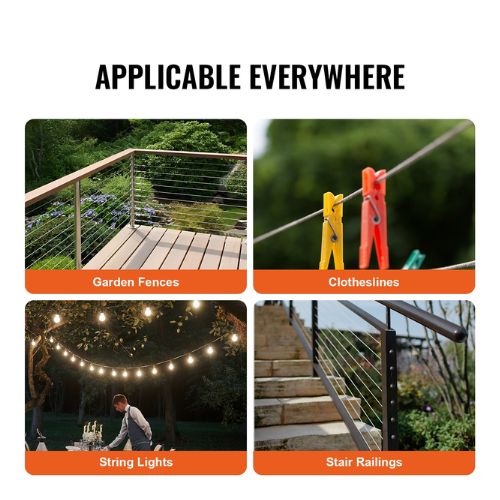 This 100 ft (30.5 m) steel cable is crafted from high-quality T304 stainless steel, offering excellent resistance to corrosion and oxidation. It’s built for outdoor use, delivering strong performance, enhanced durability, and a longer service life.