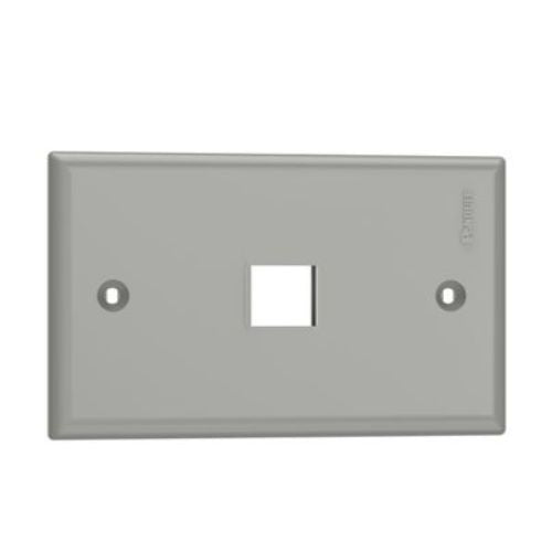 • The NetKey® Faceplate accepts one keystone module. It is a single-gang faceplate that mounts to a NEMA standard single-gang opening. The faceplate features an adhesive label for easy identification and is colored international gray.