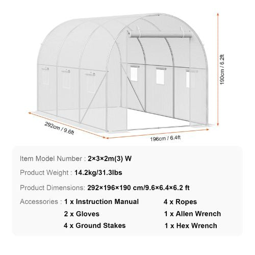 Spacious Walk-In Design: With a roomy 9.58x6.43x6.23 ft space, this walk-in greenhouse tunnel accommodates a variety of plants. Easily access and maintain your plants, or set up multiple plant shelves to meet both home gardening and commercial planting needs.