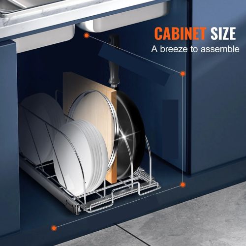 Simple & Easy to Install: Our expandable pull out organizer is designed to make your life easier with its dimensions of 12.5"W x 21"D x 8.8"H. It perfectly fits cabinets that measure 14.4" x 22" x 11.8". You don't have to worry about installation because it comes with clear instructions and all the necessary hardware. In just a few minutes, you can have the easy kitchen cabinet access you've always wanted