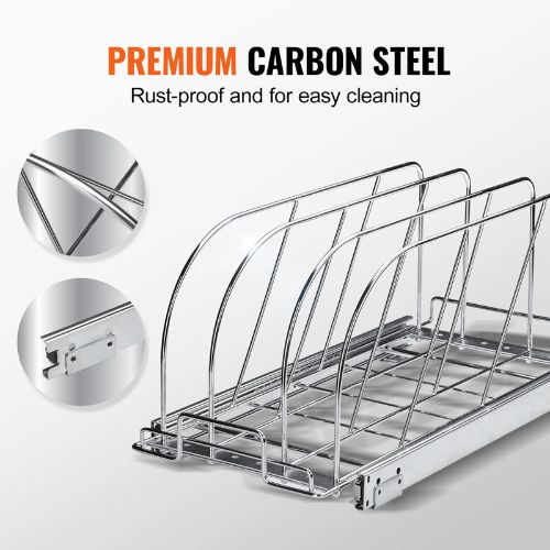 Adjustable Metal Dividers: Thanks to the flexible dividers, you have the freedom to customize the dividers based on the size of your pans and lids. This feature allows you to save significant space in your kitchen, cabinet, and even on your countertop. By utilizing these dividers, you can create a clean and tidy kitchen.