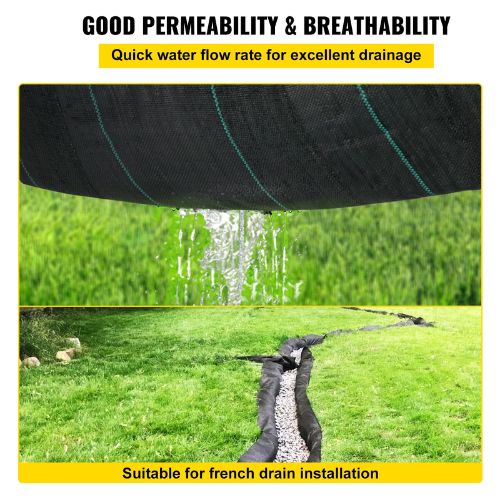 Excellent Water Permeability: The garden fabric is highly permeable and breathable, allowing water to flow quickly without worries about water pooling. It is ideal for French drains, garden planting, and landscaping.
