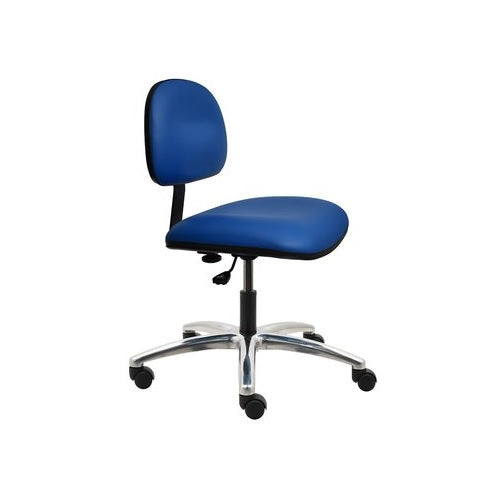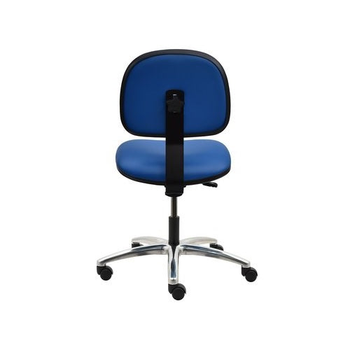 Industrial Seating Inc. Series 10 model AL12 V is a super heavy duty chair made of Vinyl, has a 17" W - 22" H desk height range with a 450 lbs. capacity equipped with 20" wide x 18" deep seat and 3" thick high resilient density foam for better comfort, 12” H x 15” W low back with black metal back bar.