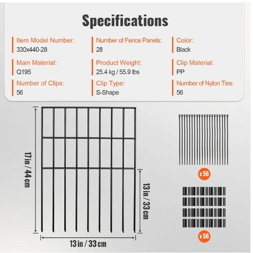 17 x 13 inches Garden Fencing with 1.5 Inch Spike Spacing and Animal Barrier Fence (28 Pack)
