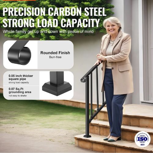 2-3 Steps Black Porch Deck Handrails for Seniors