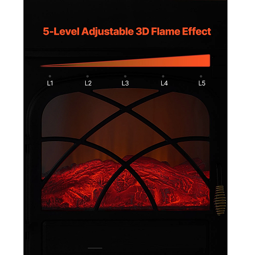 25.5-Inch Freestanding Electric Fireplace Stove Heater, 1500W 5120BTU Portable Fireplace