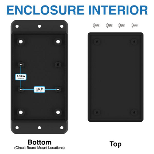 • Includes the enclosure, screws, and press-in battery contacts. All components come unassembled.