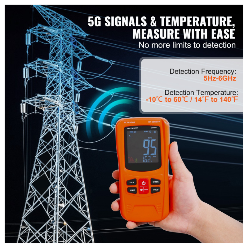 Enhanced Functionality with 5G & Temperature Measurement: Detects 5G signals up to 6GHz and monitors ambient temperature from 14℉ to 140℉, offering expanded versatility for both everyday and advanced monitoring needs.