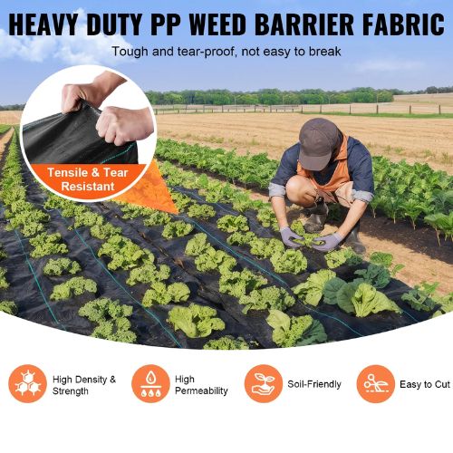 Heavy-Duty Weed Barrier Fabric: Crafted from 5 OZ high-density, tear- and corrosion-resistant polypropylene, VEVOR 4 x 250 FT woven weed barrier landscape fabric is the preferred choice for agriculture and industry. It ensures superior weed prevention and promotes soil health, keeping your landscaping weed-free for an extended period.