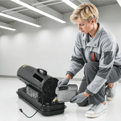 Equipped with a full-copper motor for stable output and extended use. The solid housing handles rough handling well, making this kerosene heater a reliable choice on job sites.