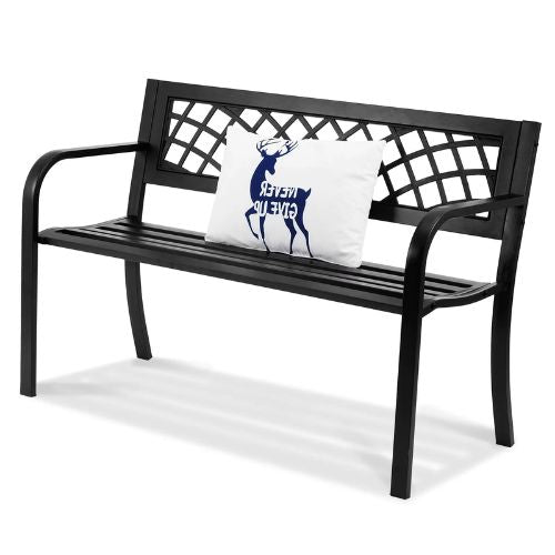 Modern Minimalist Design: The porch bench features a simple grid pattern on the backrest, adding a touch of modernity and style. The black finish blends seamlessly with any outdoor environment, enhancing its overall appeal.