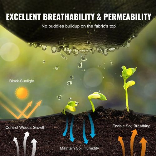 Soil-Friendly and Highly Permeable: VEVOR landscaping fabric stands out with its exceptional permeability and breathability. It allows water and air to pass through freely, promoting plants breathing and locking in soil nutrients. Say goodbye to water loss and soil erosion; let your plants thrive in the healthy environment.