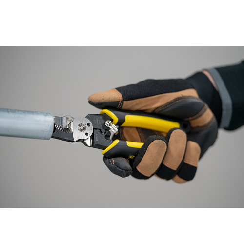 7-IN-1 multi-tool pliers are perfect for shearing, gripping, crimping, reaming, and spanning and shearing bolts. The scalloped blade cuts easily and efficiently These multi-tool pliers come with tether-ready handles for drop prevention.