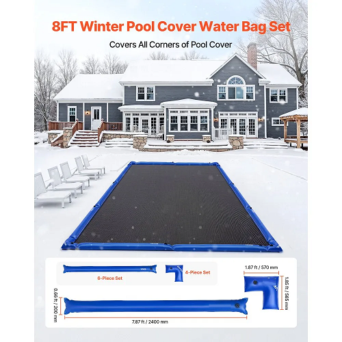 This set includes six 8 ft × 0.67 ft pool cover water bags and four 2 ft × 1.85 ft corner tubes, providing full-edge and corner anchoring for your pool cover. It improves wind resistance, blocks leaves and debris, and keeps your cover securely in place throughout harsh winter conditions—reducing cleanup time and effort.