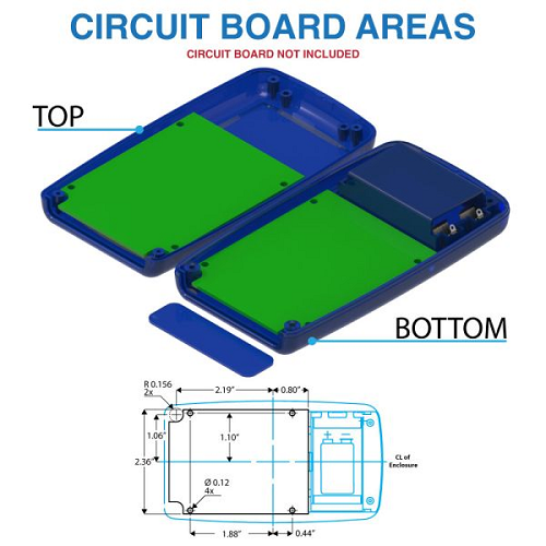 Circuit Board Areas Box 9V Battery Hand Held Enclosure With Removable End Panel H659VTR