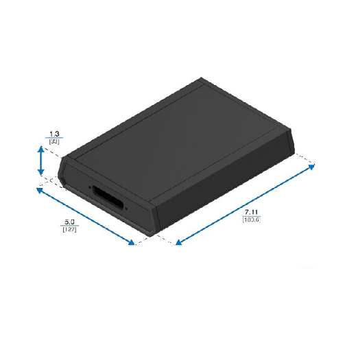 It is table/desk enclosure. The enclosure is black in color. The enclosure has strong plastic which can be protect the enclosure inside device from four corner plastic top plastic and plastic bottom. The enclosure inside circuit device can be fixed by screw location can be given at top and bottom. The fixed circuit location height and with are given as 1.35H x 1.66W. The panel which is DB25 and final desk enclosure to tight with screw.