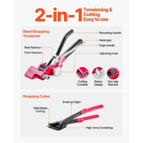 Heavy Duty Banding Sealer Tool with 400 ft Binding Straps Manual Pallet Packaging Strapping Kit for Warehouse Industrial Bundling