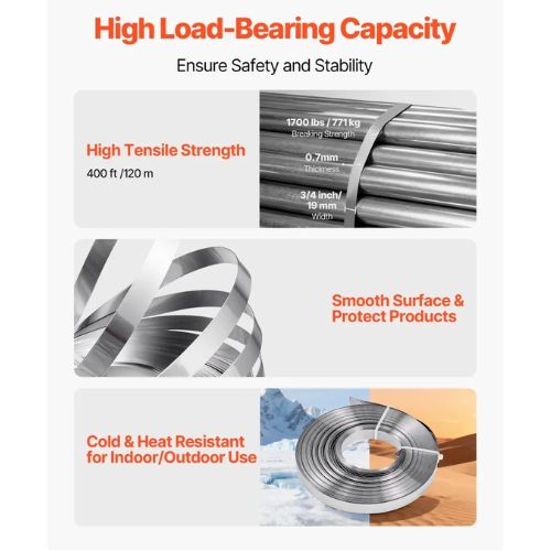 This strapping kit includes 1 tensioner tool, 4 roll of 400 ft / 122 m stainless steel strapping, and 400 Ear-Lokt strapping clasps. The Ear-Lokt buckles are wing-seal type, with an ingenious tooth that avoids steel strapping from slipping off