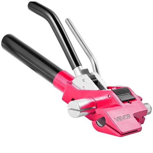 The steel strapping tensioner integrates tensioning and cutting functions, compatible with steel strapping of 3/4 in/19 mm. Featuring a rotary design, the serrated non-slip ratchet grips the strapping, enabling easy cutting