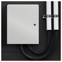 Includes a removable galvanized steel mounting backplate and four pre-drilled wall mounting holes for fast, secure installation of electrical components. -