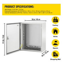 Crafted from premium carbon steel, the skyshalo Electrical Enclosure Box delivers reliable protection for your power cords, plug-ins, and sensitive equipment. Featuring a precision lock, durable high-strength hinges, and effective sealing strips, it ensures your circuits stay secure against dust, water, and corrosion. With an IP66 waterproof rating, this enclosure is built to withstand harsh environments while offering easy operation and long-lasting performance—making it a dependable choice for both indoor and outdoor electrical applications.