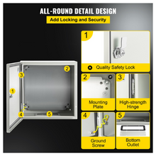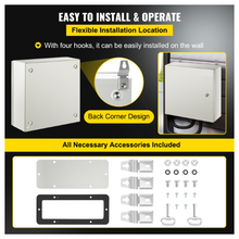 Comes with a removable galvanized backplate for easy mounting of electrical components. Four pre-drilled holes on the back allow for quick wall installation, ensuring a hassle-free setup.