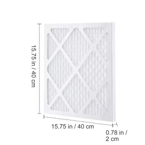Quantity and Size : 5 pieces. Dimensions: 15.75" x 15.75" x 0.75" (40 x 40 x 1.9 cm). The fully sealed filter ensures no leaks while allowing cleaner air to flow through.