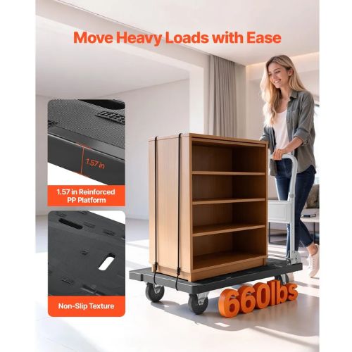 Crafted with a PP platform and alloy-steel frame, this foldable push cart dolly resists bending under heavy loads. Supports up to 660 lbs (299.4 kg), it moves boxes and tools with less strain and high durability